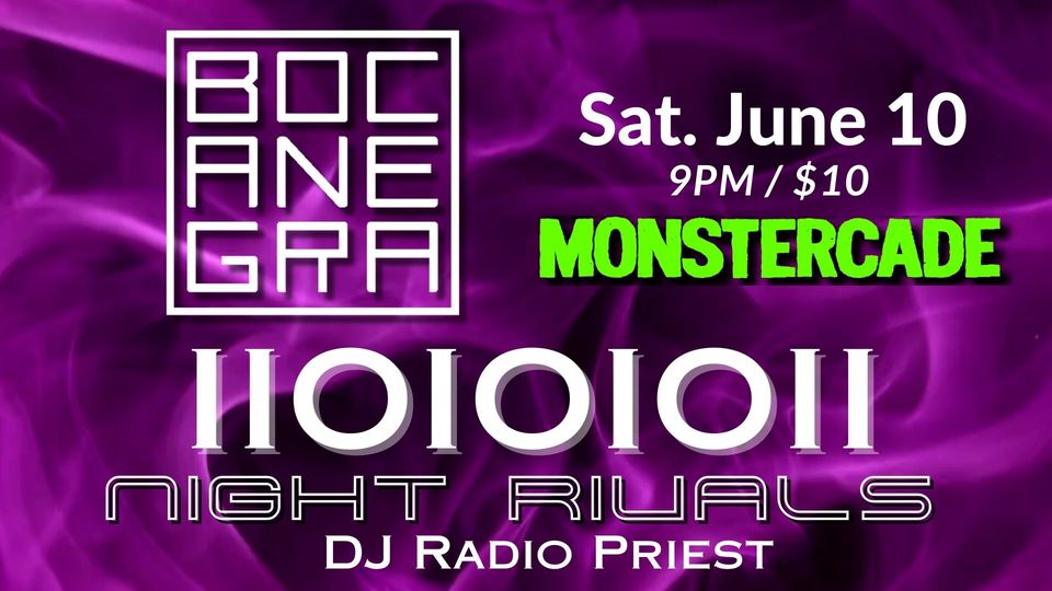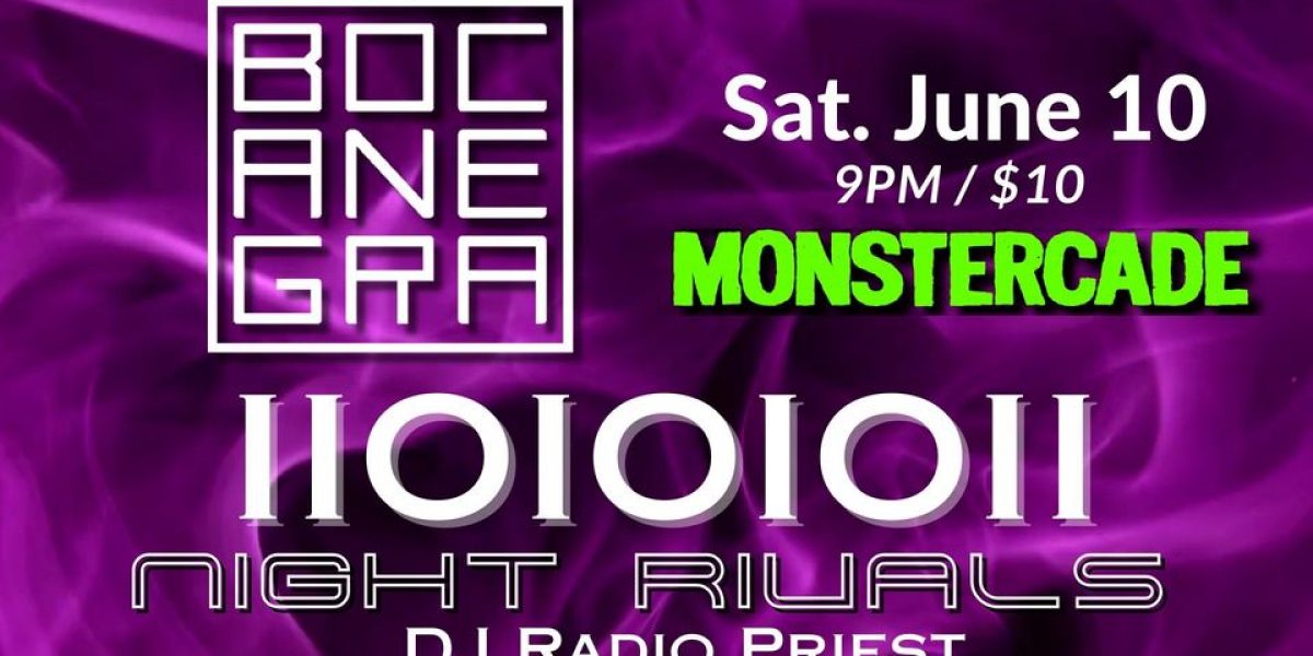 After years of slumber, legendary post-punk outfit Bocanegra roars back to life with EBM superstars IIOIOIOII, Night Rivals, and DJ Radio Priest. A Night of Dark Delights Await You!