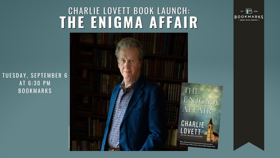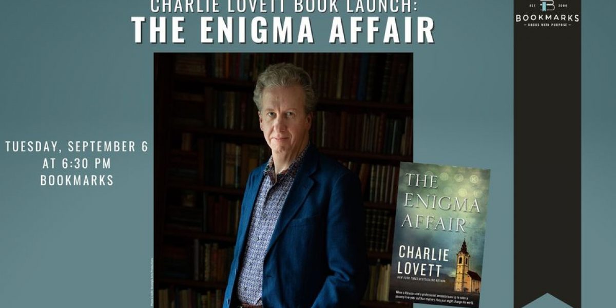 Bookmarks is excited to host the national launch for Charlie Lovett’s new book, The Enigma Affair, on Tuesday, September 6 at 6:30 pm!