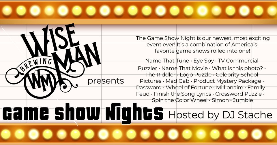 We are taking a break from Trivia, the last Monday of every Month and launching our Game Show Night! It’s a combination of America’s favorite game shows rolled into one!