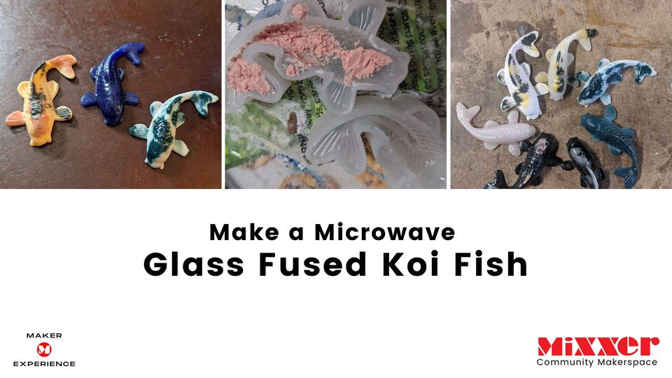 In this maker experience, makers will learn about glass fusion in the microwave and create a glass koi fish. Makers will be able to take their creations home the same day.
