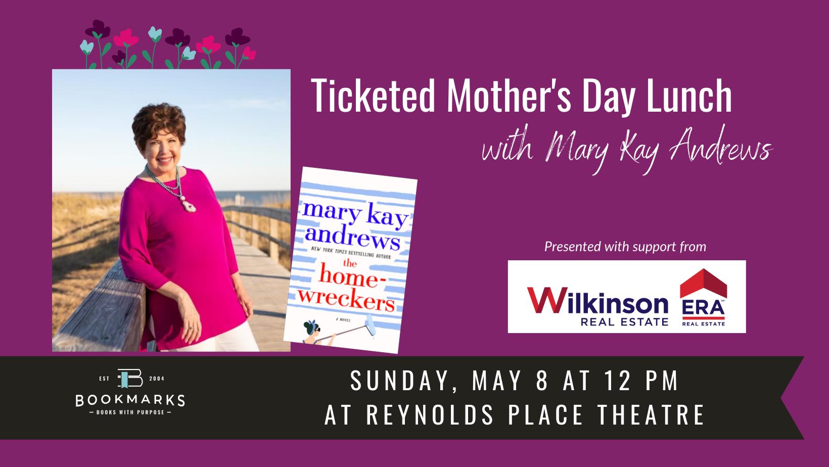 Celebrate Mother’s Day with Bookmarks and Mary Kay Andrews on Sunday, May 8 at 12 pm at Reynolds Place Theatre!
