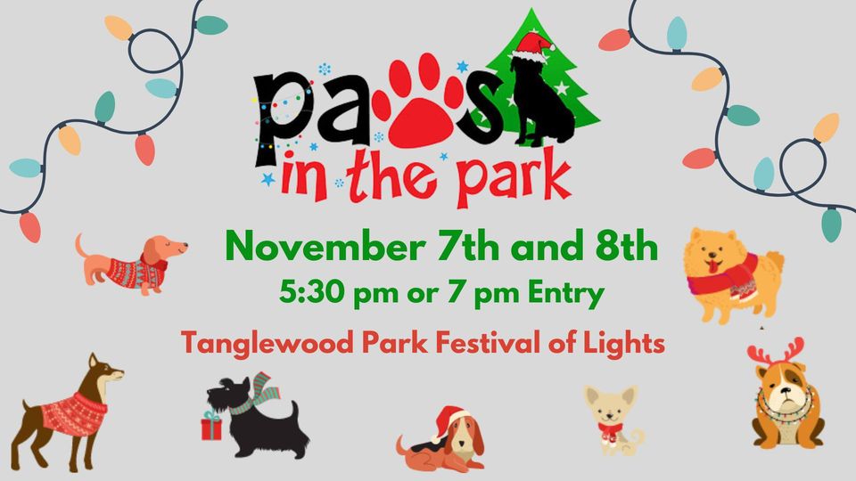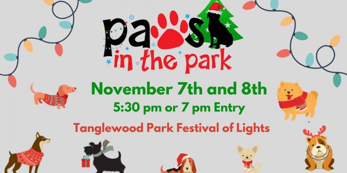 This unique event gives you the opportunity to bring your best four-pawed friends with you to walk through the enchanting Tanglewood Festival of Lights. Love cats and dogs? Paws in the Park welcomes all animal lovers to walk with or without your favorite four-pawed friend.