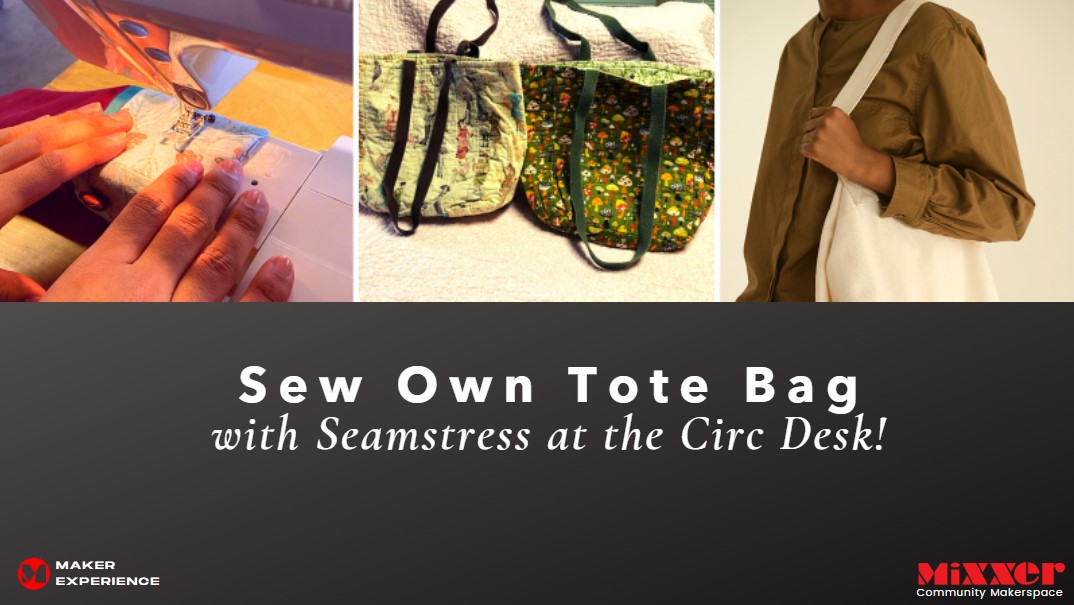 In this maker experience, you will choose and take fabric to create your own tote bag. You will gain or improve your sewing machine skills with Lara of Seamstress at the Circ Desk!