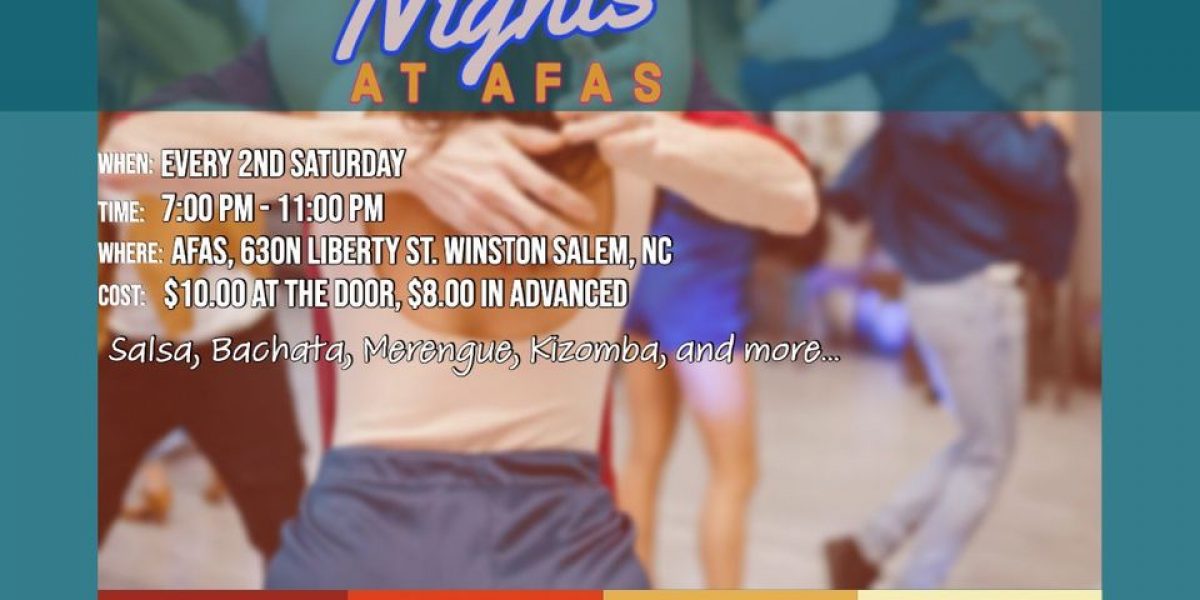 A salsa lesson will be given from 7-8:00 PM. Social dancing will be from 8-11:00pm, featuring a variety of rhythms (Salsa, Bachata, Merengue, Kizomba etc.).