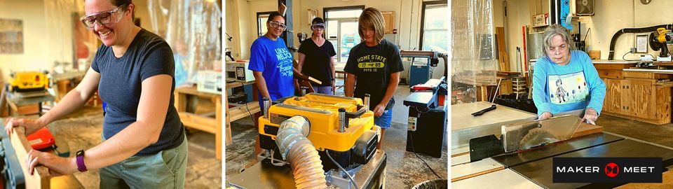 Some of the women we surveyed wanted a women’s only event where they can be themselves and connect with other women. If that appeals to you, come on over for this introductory woodworking maker meet experience on the 2nd Wednesday of the month.