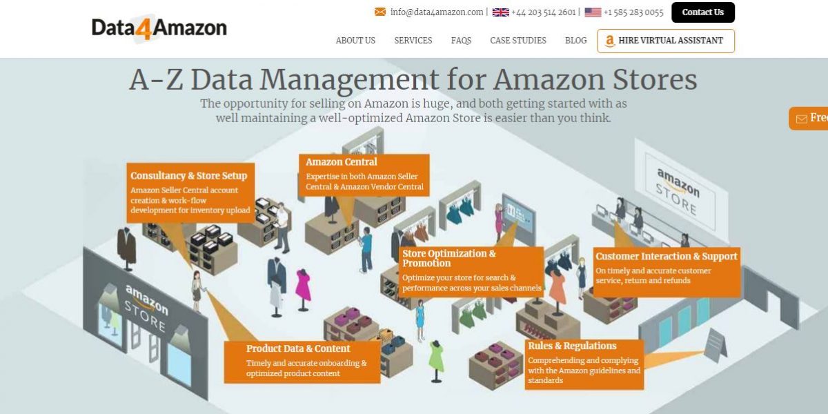 Data4Amazon is a leading Amazon management marketplace company and a part of the Amazon Service Provider Network, helping sellers streamline their operations on the marketplace with dependable solutions. With a skilled team of 500+ Amazon experts, we provide Amazon SEO services, catalog management, listing optimization, content management, marketing, back office support, customer interaction, and Amazon product listing services, among others. Established in 1999, we have rich experience in providing reliable Amazon support services and have helped manage data for 3500+ Amazon stores.